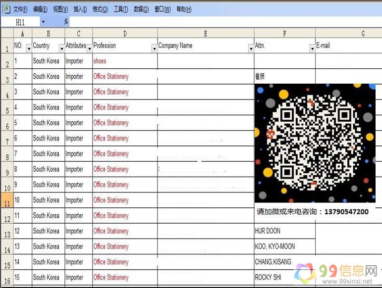 本人从2014年从事外贸行业,数年间在参展,邮件开发,网站收集等沉淀与积累了珍贵的外国贸易公司和企业的资料www.99xinxi.net。有:美国,英国,法国,德国,意大利,西班牙,荷兰,土耳其,俄罗斯,印度,日韩,东南亚地区,加拿大,澳大利亚等国来自www.99xinxi.net。涉及“一带一路”“丝绸之路”主要贸易国欢迎www.99xinxi.net。现将包含公司邮箱,联系人,公司网站,所属行业,所属国家等资料公开售卖99信息网。面向全国出口企业和做出口的朋友,价格:6000元9_9_x_i_n_x_i_n_e_t。数据有价,市场无价9_9_信_息_网。欢迎各位朋友加微或者来电咨询购买99信息网www.99xinxi.net。