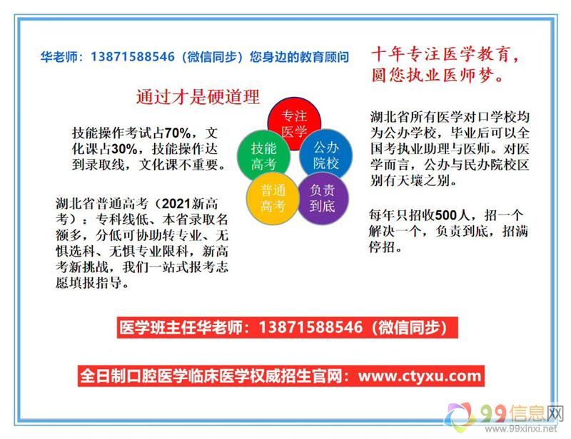 开办十年,累计近5000人通过我们顺利进入医学本、专科院校,获得了自己所梦想的口腔医学、临床医学、中医学等专业原文www.99xinxi.net。