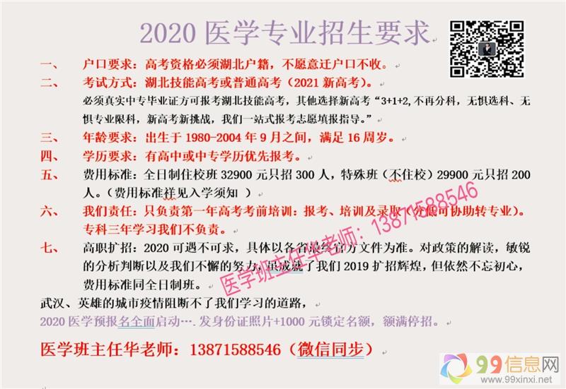 武汉口腔医学医学班报名联系:华老师13871588546(微信 同步);黄老师15871784036( 微信同步);华老师:13627253815(微信 同步)来源www.99xinxi.net。